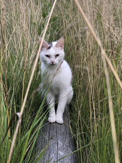 Jentepus uten chip funnet , går ute og vil inn full av øremidd , virker som om hun har vært ute en stund