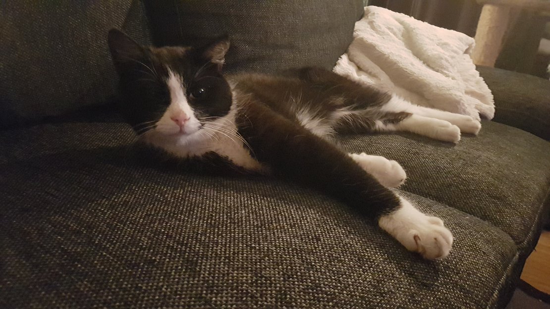 Han har vært hos oss i 14, etter vi tok han av oss fra noen som skulle flytte. Han er nervøs og redd folk ( ikke fullt så redd oss lengre)