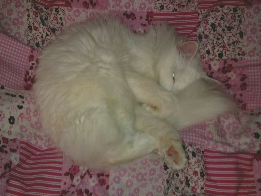 Vår innekatt Linn forsvant ut av verandadøren som sto på gløtt. Dette har skjedd før,men da har hun kommet tilbake etter en liten stund. Vi har lett etter henne i nærområdet, uten hell. Linn er en litt sær frøken til å begynne med,men kan være veldig kosete.Da hun ble borte hadde hun noen knuter i pelsen. Hun er helt hvit med gulgrønne øyne. Hun er dypt savnet.