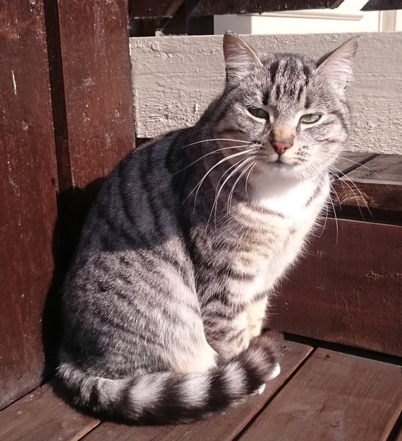 Hvit på brystet og labbene. Har bare tre tåer på venstre bakfot. Oppholder seg mye i skogen like ved. Pleier å være veldig pratsom, og er derfor vanligvis enkelt å finne.