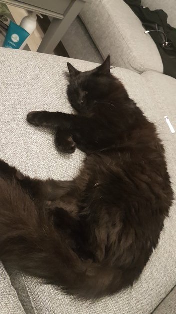 Svart hunkatt på 3 år, redd for folk hun ikke kjenner.