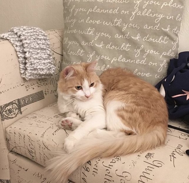 Han er veldig sky og redd av høye lyder. Han er chippet og har ID merke på øret
