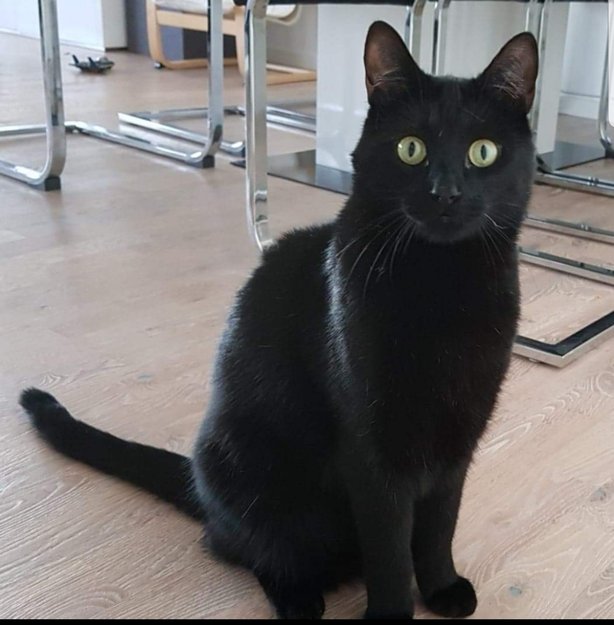Turbo kom hjem av seg selv etter en uke på tur. Veldig kosete og sulten. Bortsett fra en stor flått på hodet er alt bra med pus.