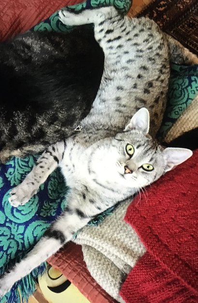 spotted, striped cat.