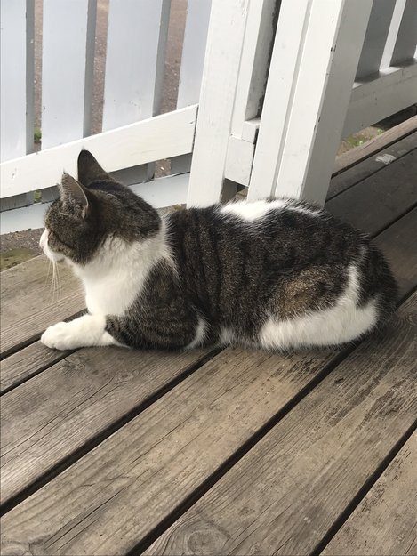 Hvit, grå , brun hannkatt var savnet i Tjøme