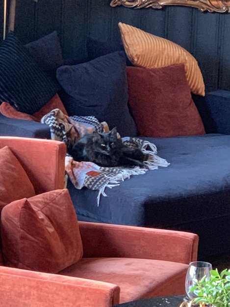 Svart langhåret katt som oppholder seg og går mye rundt ved huset vårt. Katten er selskapssyk og virker som den er vant til mennesker. Katten vil være inne i huset, men vi vet ikke om den er savnet.