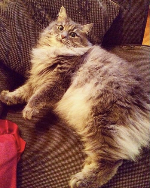 Liten av vekst. Lang, tjukk pels. Grønne øyne.