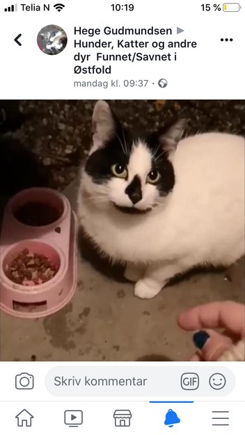 Katten kom plutselig en dag og har blitt værende her.Den er kontaktsøkende og tilittsfull så det er tydelig at den har eiere.pelsen er velstelt og den ser frisk ut.Den vil gjerne inn her.