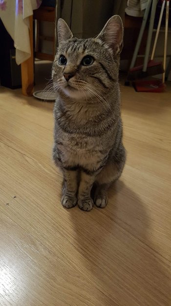 Katten våres kom hjem med en annen katt uten halsbånd eller chipp en dag. Vi trudde det var en jente, men det var en gutt. Siden han ikke hadde blitt kastret, kunne vi finne ut hvilken kjønn han var etter han begynte å vaske seg. Jeg har gitt han navnet Balle. Pelsen hans var veldig stiv og han var veldig tynn. Jeg ga han litt tørrfor når han satt utenfor kjøkkenvinduet. Etter noen dager begynte han å komme inn til oss. Han spiser ekstremt mye og han har begynt å sove i en liten boks vi har i gangen. Han krangler og sloss mot katten våres noen ganger, men de har roet seg ned litt nå. Han har begynt å bli litt tykk, så vi prøver å roe ned litt med maten, men alt han gjør er å spise.