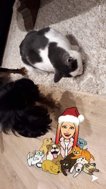 Mørke grå og hvit pels. Stor og vennlig, kan være litt sjenert.