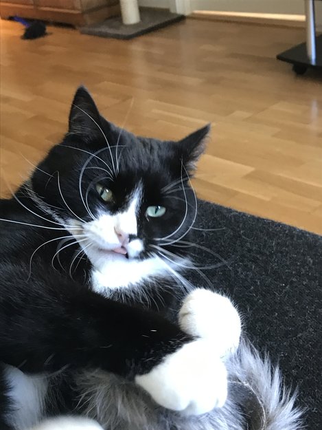 Katten er innekatt som er nyflyttet til Oslo. Han er ikke kjent i området. Han klarte å smette ut av døra kl 06.30 i dag.