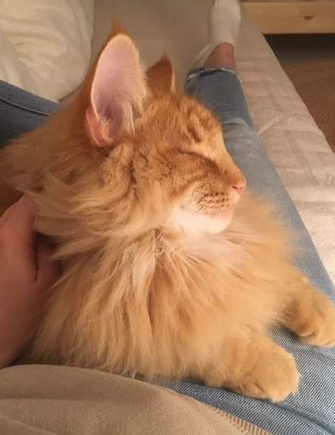 Norsk skogkatt. Vanligvis en stor katt med mye pels.