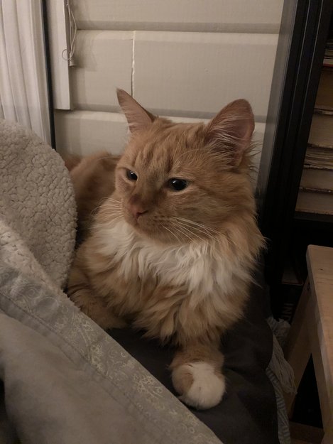 Var veldig veldig sulten når han kom seg inn hos meg første gangen. Han knurret til katten min når hun ville spise sammen med han. (Tror det er en mons men jeg er ikke sikker.) Har sett han her i området siden i sommer.