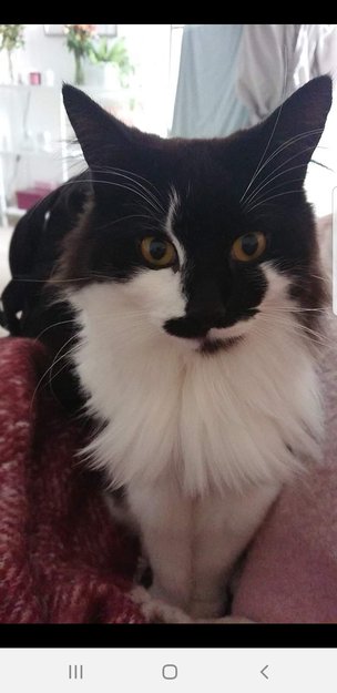 Ozzy har bodd hos min far en stund og har ikke returnert på en stund nå. Han har på seg blå sele (om ikke noen har tatt den av ). Han er født på gaten, og har hatt en tøff start på livet. Ozzy kan være svært sky mot nye mennesker, men trygg på dem han kjenner. Maler høyt. Kastrert.