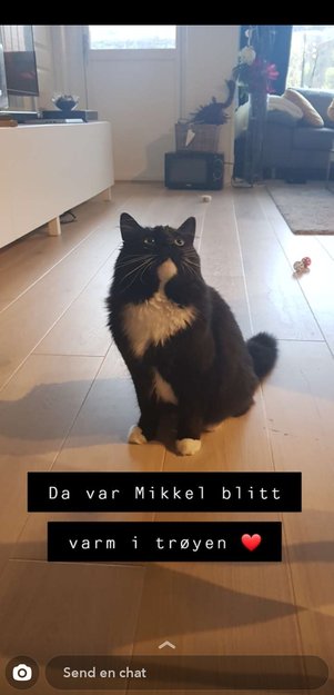 Mikkel har tatt sin første tur ut siden vi fikk han og har ikke vist seg siden. Han er en litt usikker pus, så han er redd og gjemmer seg godt. Men veldig snill og kosete når man først kommer innpå han med en matbit.