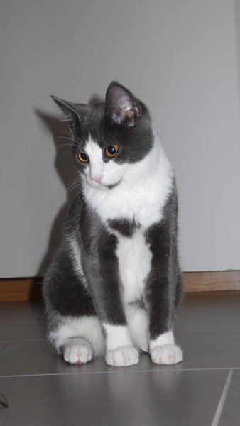 Grå flekk under haken på høyre side. Hvite labber, hvit under.