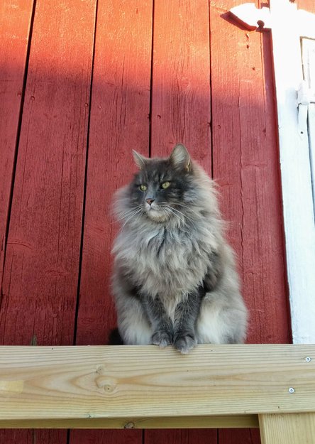 Kosete og snakkesalig 8 år gammel kastrert hankatt. Noe reservert overfor fremmede.