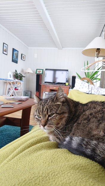Hun er en ganske stor hunnkatt. Skeptisk av seg og går som regel ikke bort til ukjente folk. Kastrert og holder seg som regel i nærheten.