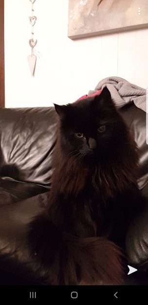 Bruker å gå inn i garagen eller boder som er åpent. Lyder navnet sitt. Litt grå farge på halsen. Er kastrert og chippet