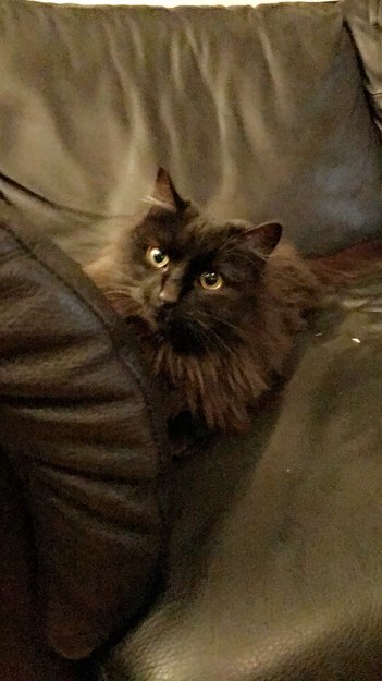 Ruth er helt sort, langhåret og nok så stor i størrelse. Hun er litt sky til fremmede.