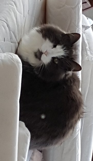 Denne katten begynte å oppholde seg fast på terrassen vår i løpet av oktober, og oppholder seg der gjennom store deler av døgnet.