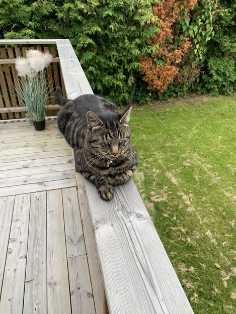 Han gikk ut på sin vanlige morgentur. Har nok blitt skremt av raketter som ble akutt opp på formiddagen. Han kommer alltid innom på ettermiddagen, noe ikke skjedde igår