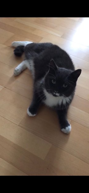 Lys grå m hvite sokk hannkatt var savnet i Bærum