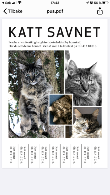 Pus kom seg ut av leiligheten. Vi er nyinnflyttet og pus er ikke kjent i nærområdet.