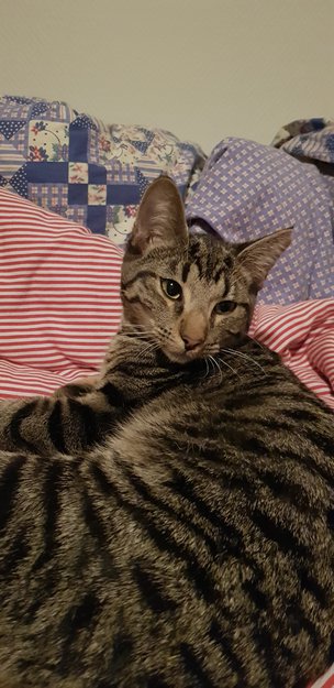 Den ser ikke gammel ut, vanskelig å si hvor gammel men det er ikke store gutten. Han er ikke redd mennesker og virker generelt ganske avslappet. Veldig kosete.