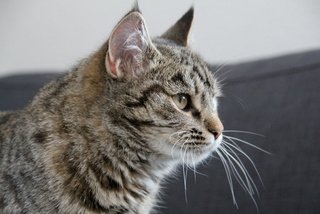 Liten hunnkatt (8mnd). viltfarget ligner litt på ei gaupe. Tatovert ID i venstre øre.