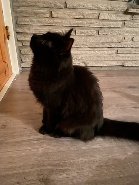 Kald og sulten kattunge oppsøkte oss på skistadion etter trening tirsdag kveld. Tok den med hjem for varme, mat og kos.