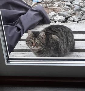 Katt som har gått ute i Skjeldstadmarka utenfor Hegra i ca. 1 år. Blitt matet i området den siste tida. Katten er skvetten og redd for fremmedfolk.