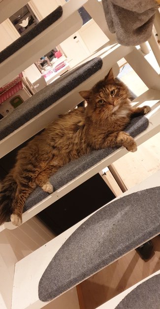 denne katten har opphold seg utenfor huset vårt i 2 uker. den oppsøker oss,og vil gjerne ha kos og en plass å varme seg. den er snill og rolig, litt sky. virker som om den har hatt ett hjem men den er her hver eneste dag. den er ikke tynn,men veldig ustelt i pelsen og full av øremidd. har vært hos dyrlege for å sjekke etter chip, så den er ikke chippet, heller ikke kastrert. dyrlegen mente på at det var en godt voksen katt.
