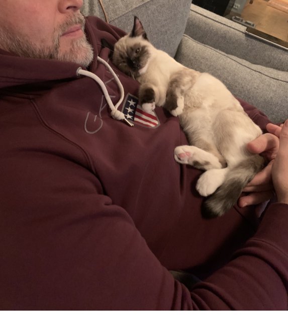 Lille Chanel gikk ut sammen med kattemor og kom ikke tilbake. Noe som er helt uvanlig. Hun er elsker kos og er en vanlig huskatt. Hvit med brune flekker/områder og blå øyne. Hun er chippet og sterilisert.