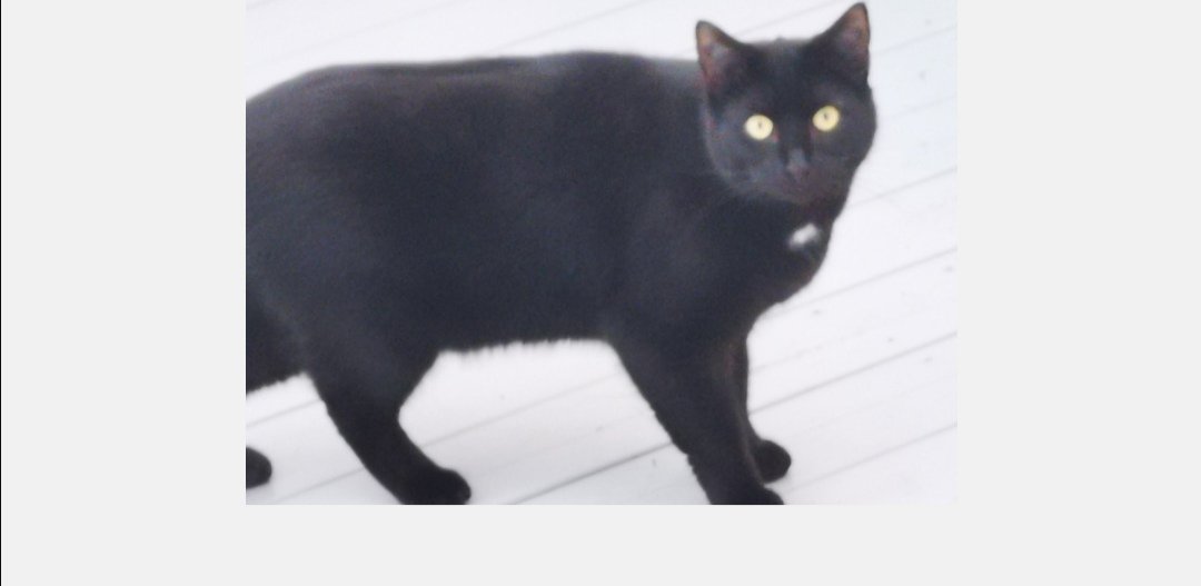 Svart katt som har oppholdt seg på terrassen vår i lengre tid.