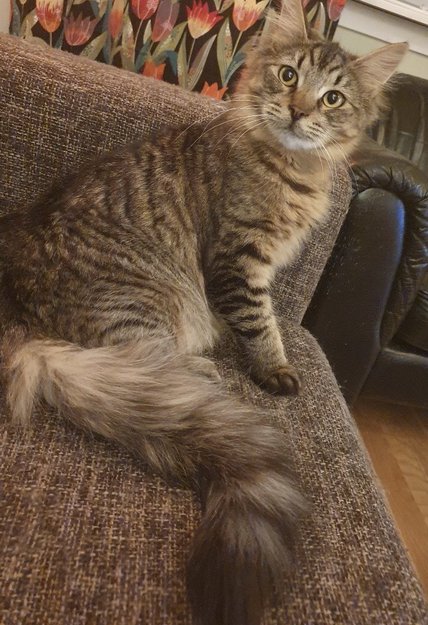 Stardust er en liten kar med vakre brunfarger, ca. 9 måneder gammel. Ser ut som en liten "tigergutt". Litt sky av seg og søker ikke lett kontakt med mennesker.