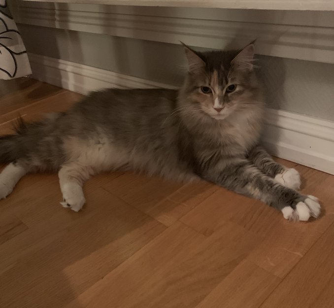 Vi har mistet Gilly en skjønn Maine Coon på snart 2 år. Hun hadde bare bodd hos oss i 10 dager. Hun er ikke vant med å gå ut og kjenner ikke området. Hun er derfor sikkert både sky, redd og veldig sulten. Hun er kastrert og chippet.