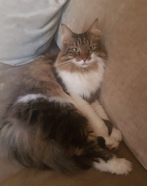 Kun 6 sorte prikker/værhår på ene siden. Skamklipt pels under magen.