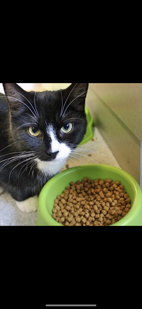 Bakbena er mesteparten hvite og forbeina har hvitt på seg rett over potene. mesteparten av magen hans er hvit. Deler av ansiktet er også hvitt, og det følger ned til halsen og magen. Resten av kroppen er hel sort. Han skal mest sannsynlig ha på seg ett halsbånd.
