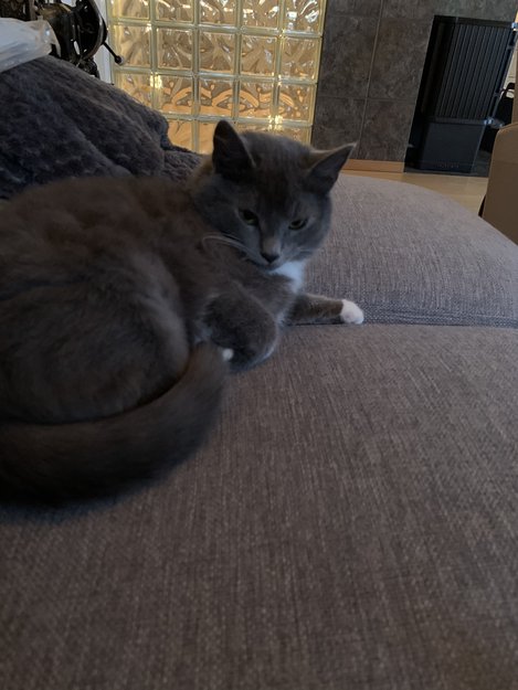 Grå med hvitt bryst og hvite poter. Liten av vekst, spebygd. Noe kort hale. Sky.