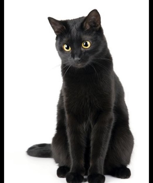 Milka er helsorte hunnkatt. Uten halsbond. Chippet og sterilisert. 6 år gammel.