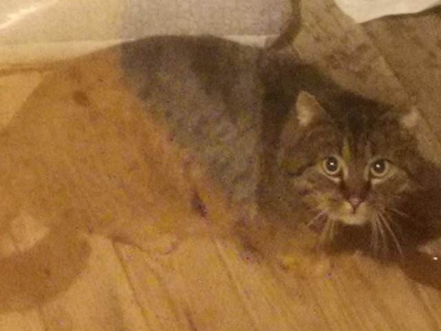 Er det noen som savner denne? Denne katten har holdet til i området i Langliveien i Skiptvet i ihvertfall ett år. Den virker sky. Ser ut som en hannkatt. Grå stripete/flekkete."