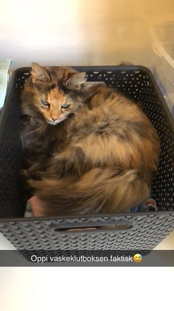 Liten hokatt. Veldig fluffy pels. Har en dobbel haleknekk inne ved haleroten, så halen er unormalt kort.