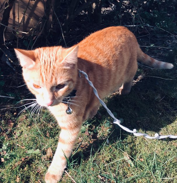 Hun har mørke øyne, hun har noen hvite striper på halen. Hun pleier og kjenne meg igjen
