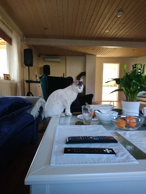 Hunkatt cirka 5-6 mnd kom på besøk gjennom terrassedøra som om til sitt eget hjem. Kom gjentatte ganger i det siste uka men etter besøk gikk tilbake til brent garasje i nabolaget hvor eieren bor ikke på eiendommen. Kom igjen i går kveld og vil ikke ut. Det er merkelig at jenta er i løpetid så er trygt hjemmeværende hos oss. Jeg varslet nabolaget med de som jeg snakka med vet ikke om eieren av katten. Jeg prøvde å sette innlegg på Facebook grupper men det er ikke lov å sette sånn type annonse.