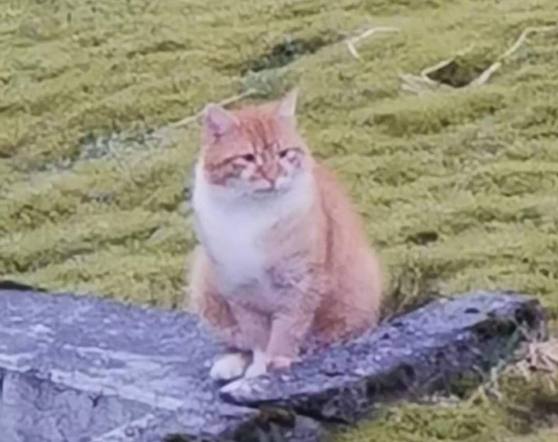 Dinna katten har gått rundt i nabolaget i fleire veker. Er det nåken som eig den? Dyrebeskyttelsen er kontakta.