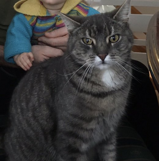 Trigger er vanligvis inne på natten. Holder seg i nærheten av hjemmet og matskålene ..Kom ikke inn på kvelden og har vært borte siden 13 april.