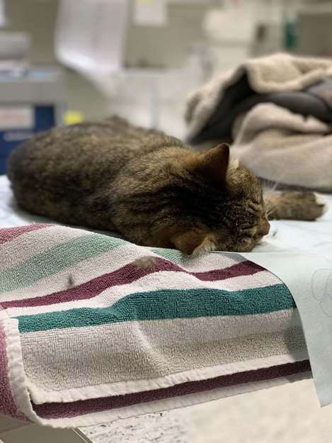 Det ble levert inn en katt til Evidensia Oslo dyresykehus onsdag 15/04/20, katten var ukastrert og ikke chippet. Katten ble funnet ved Østaveien liggende i grøfta. Katten hadde omfattende skader og livet stod ikke til å redde, dessverre.