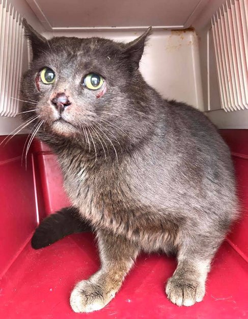 Katten har hatt tilhold i området til Oppdal bilhøggeri, sammen med to andre katter. De bærer preg av å ha vært der lenge. Er nå tatt inn av Dyrebeskyttelsen.