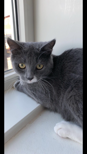 Lucy smatt ut av døra torsdag 16.april.Hun er ikke vandt til å være ute.Hun er 8 mnd .Ikke chippet eller kastrert ennå. Hun er grå huskatt .